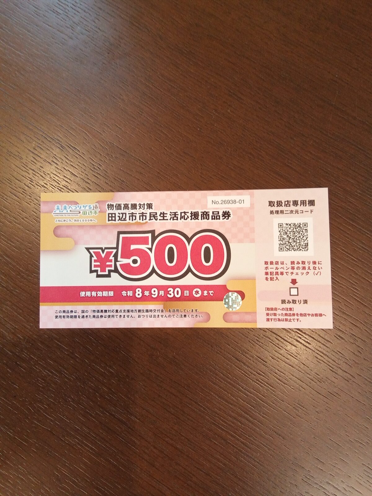 田辺市商品券 届きました!